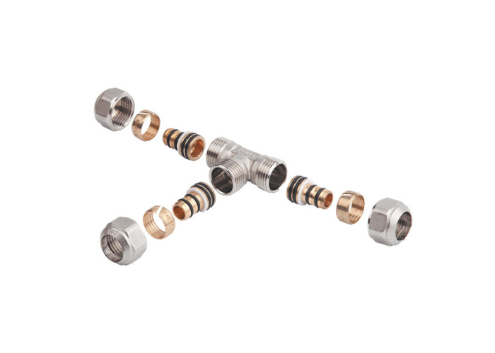 Трійник металопластиковий Icma №546 20х20х20. Тип фітінга - трійник. Покриття - нікель. Для підключення та з'єднання труб і всіляких вузлів системи опалення і водопостачання використовують спеціальні елементи, звані фітингом. Серед великого їх різноманіття і застосування в тому чи іншому типі підключення, виділяється тип латунного фітинга, яке використовується для підключення металопластикової труби - обтискний фітинг компресійний. Обжимний фітинг для металопластикової труби досить різноманітний і може повноцінно застосовуватися для герметичного з'єднання всіх труб в системі. Обжимний фітинг - трійник ICMA є латунний перехідник потоку металопластикової труби, який виготовляється з декількох елементів з основним металом - латунь. За допомогою обжимного трійника - фітинга потік рідини розділяється на два потоки.