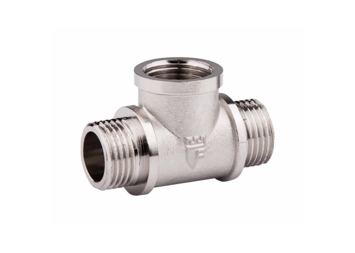 Трійник SD Forte 1/2" ВЗЗ з нікельованим покриттям, застосовують для приєднання труб до основної магістралі під кутом 90 градусів, і являє собою об‘єднані порожнисті циліндри з латуні.