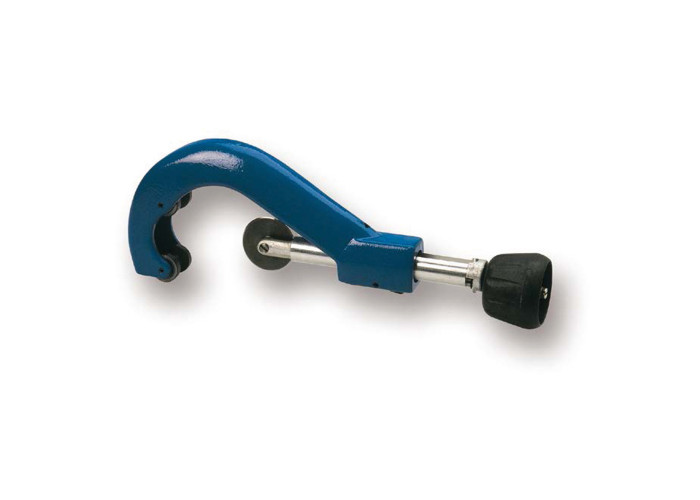 Ручний трубний різак для обрізки металопластикових труб Blue Ocean 12-63 виконаний в червоному кольорі з роликовим типом приводу з ріжучою частиною у вигляді диска. Завдяки даній конструкції труба фіксується в ложі і після обрізки має готову фаску. Інструмент призначений для виконання рівного гладкого зрізу одношарових і армованих поліпропіленових труб діаметром 12-63 мм.