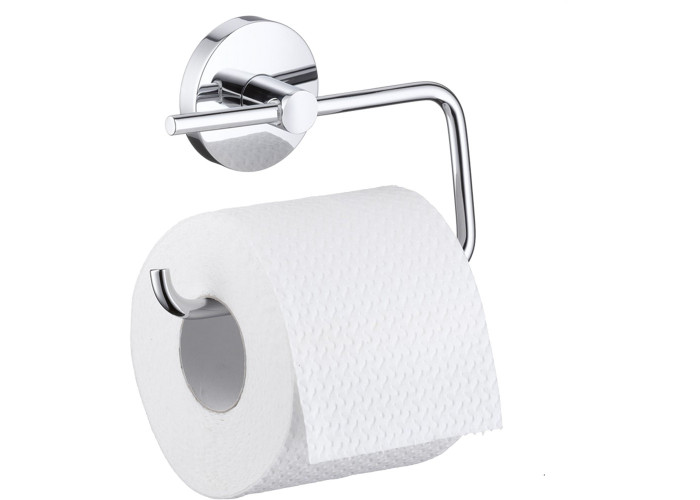 Тримач для туалетного паперу Hansgrohe Logis 40526000 виготовлений з міцного металу з хромованим покриттям, яке поєднується з усіма аксесуарами санвузла. Тримач кріпиться на стіну шурупами на необхідну висоту і, завдяки загнутому гачку, захищає туалетний папір від падінь. Приховане кріплення дозволяє зберегти обробку санвузла.
