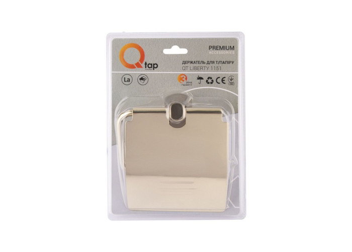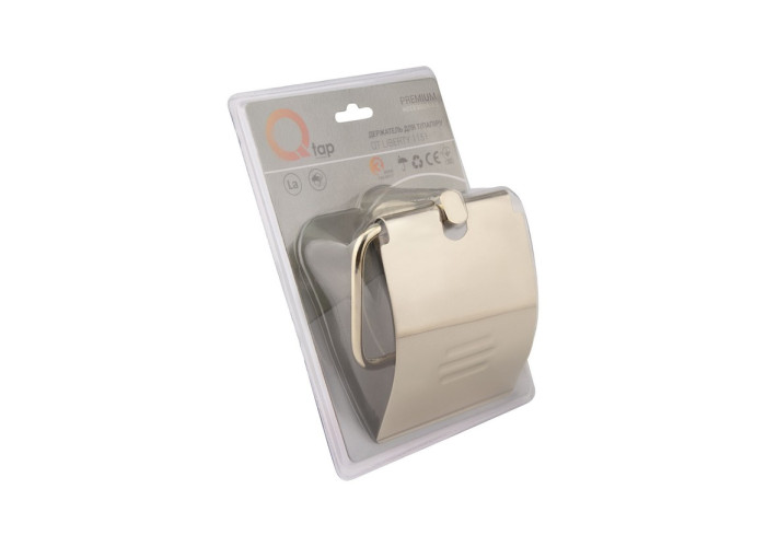 Тримач для туалетного паперу з кришкою Qtap Liberty ORO 1151 виготовлений з міцного металу і має глянсову золоту поверхню. Він підходить для інтер‘єру з дизайном в будь-якому стилі й поєднується з усіма аксесуарами санвузла того ж кольору. Кришка приховує з поля зору рулон туалетного паперу, й захищає його від бризок та пилу. Приховане кріплення дозволяє зберегти обробку санвузла. На тримач нанесено фірмовий логотип виробника.