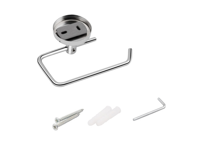 Тримач для туалетного паперу SW 22-104CRM виготовлений з якісного металу, має глянцеву поверхню. Він гармонійно поєднується з аксесуарами для санвузла такого ж кольору. Тримач кріпиться на стіну за допомогою шурупів на необхідну висоту і, завдяки загнутому гачка, утримує рулон від падіння. Приховане кріплення дозволяє зберегти обробку санвузла.