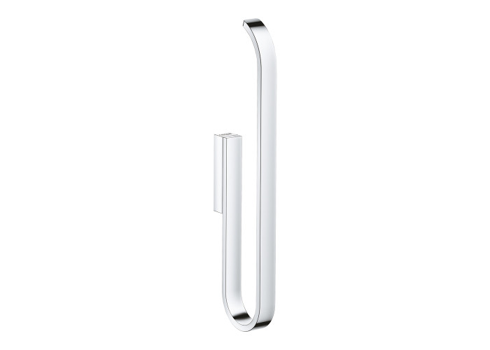 Тримач для запасного туалетного паперу Grohe Selection 41067000 виконаний з металу з хромованим покриттям, яке запобігає утворенню корозії і бруду. На стрижені розміщується два рулони паперу. Таким чином, вони завжди будуть під рукою і вирішать проблему місця зберігання. На тримач нанесено фірмовий логотип виробника.