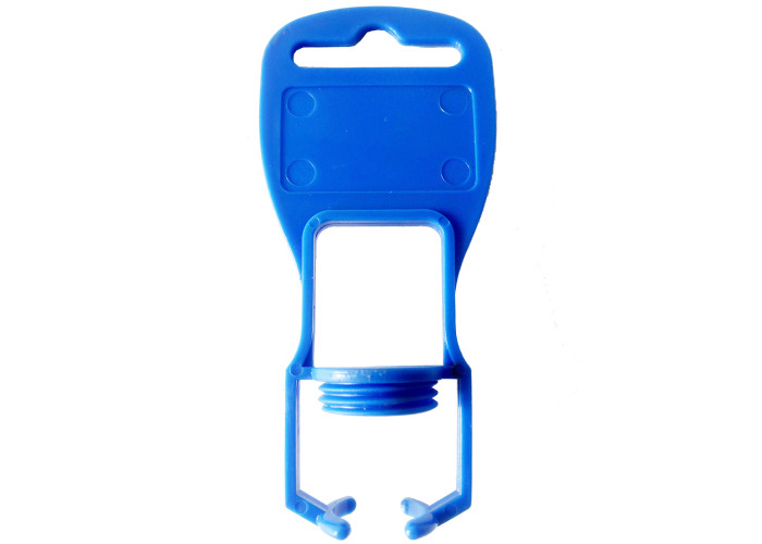 Синій пластиковий тримач для гнучких підведень. Знадобиться для викладки шлангів на вітрині із підвісом (розміщення шлангів на металевих гачках). Підійде для стандартних стендів.
