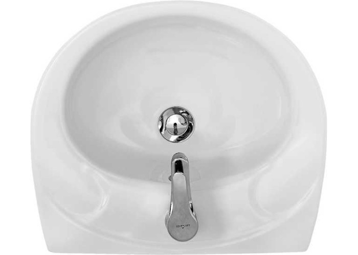 Умивальник EKO 50 з отвором для змішувача та переливом був пристосований для установки безпосередньо на стіні з декоративним сифоном, напівпєдесталом PRESIDENT або пєдесталом DECO.