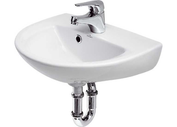 Умивальник PRESIDENT 45 з отвором для змішувача та переливом був пристосований для установки безпосередньо на стіні з декоративним сифоном.