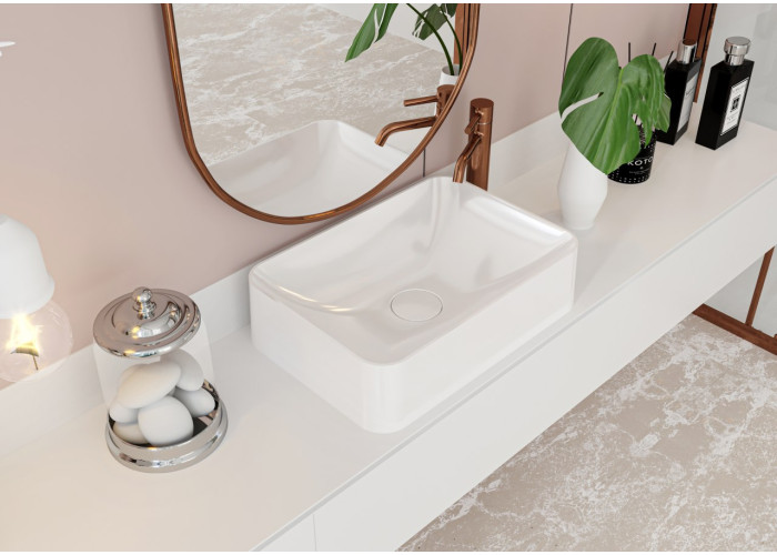 Раковина DEBORA має трапецієподібну форму, яка розширюється до низу. Дизайн умивальника передбачає, що змішувач буде вмонтований у стіну або розташований поруч.