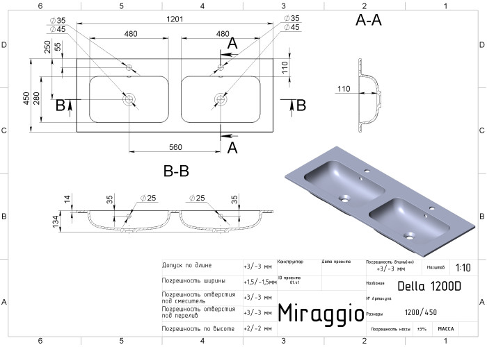 DELLA 1200-2 MATT має прекрасний дизайн з двома чашами.