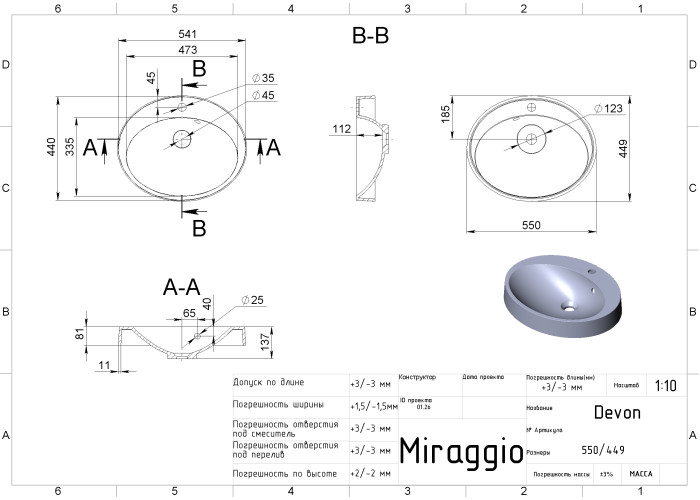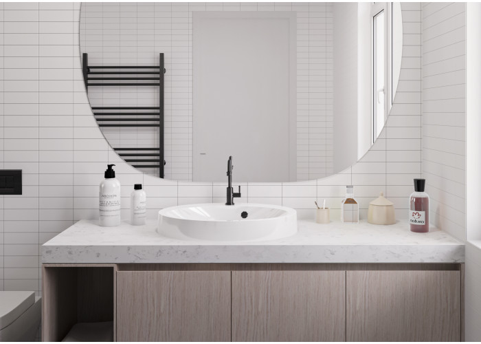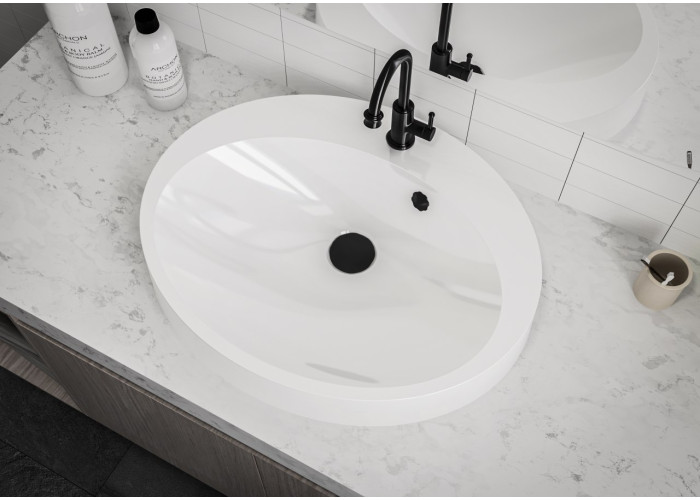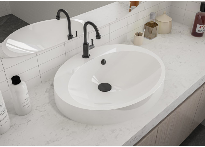 Раковина овальної форми DEVON відмінно впишеться в дизайн будь-якої ванної кімнати. Накладний тип установки дозволяє монтувати умивальник на стільницю з прямою поверхнею.