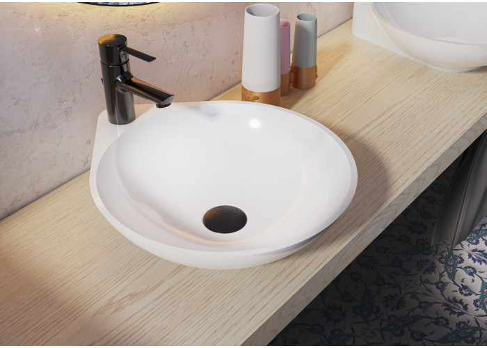Раковина має вже підготовлений отвір під змішувач. Florence має круглу містку чашу діаметром 40 см, розмір умивальника цілком - 466 * 400 * 121 мм.
