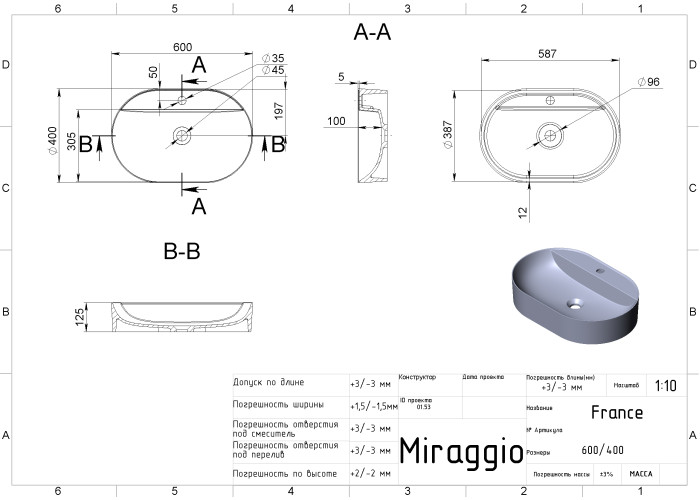 Умывальник FRANCE GRAY из кварцевого песка