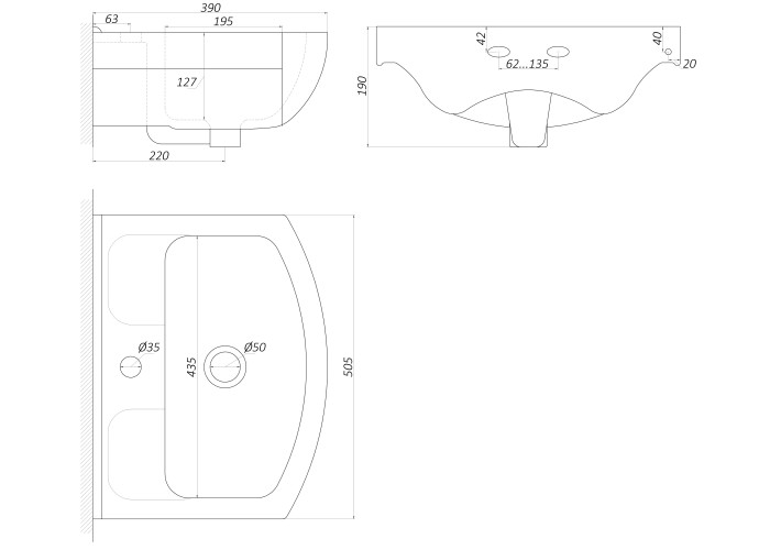 Комплектація: умивальник, декоративне кільце на отвір переливу
