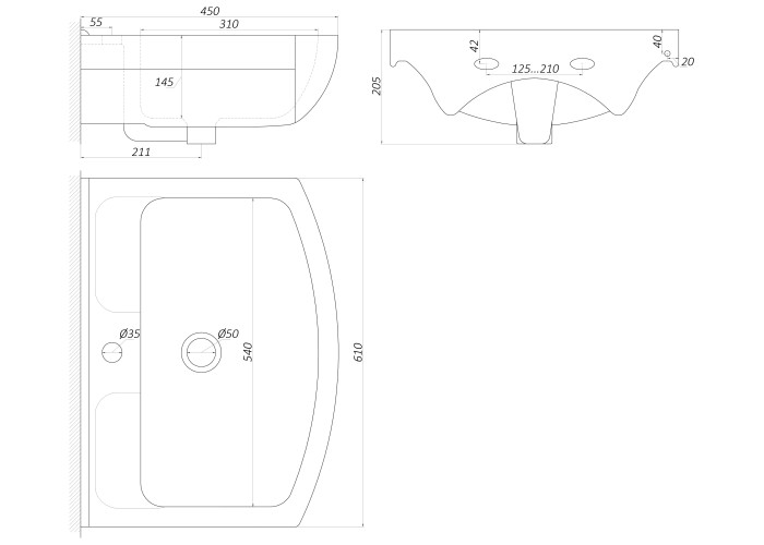 Комплектація: умивальник, декоративне кільце на отвір переливу