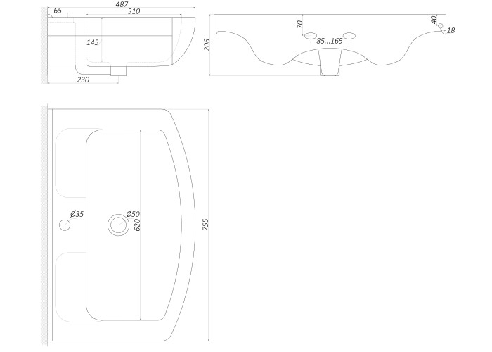Комплектація: умивальник, декоративне кільце на отвір переливу