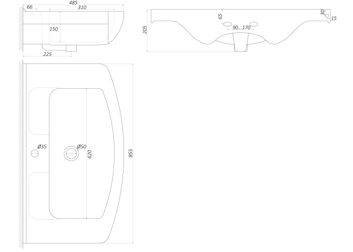 Комплектація: умивальник, декоративне кільце на отвір переливу