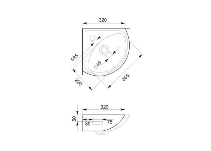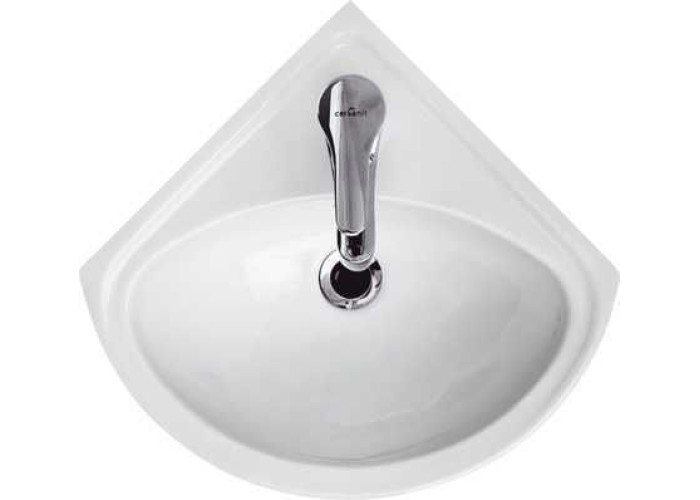 Кутовий умивальник SIGMA 32 призначений для невеликих ванних кімнат. У ньому є кутовий отвір для змішувача і перелив. Умивальник підходить для настінного монтажу.