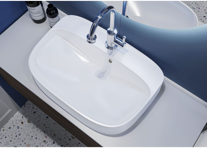 Ви можете купити накладну раковину з каменю з глянсовою або матовою поверхнею. Умивальник має оригінальну форму, завдяки чому відмінно вписується в сучасне оформлення інтер'єру ванної кімнати.