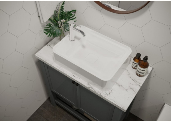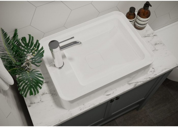 Умивальник має отвір під змішувач і комплектується декоративною накладкою на злив, виготовленої з того ж матеріалу.