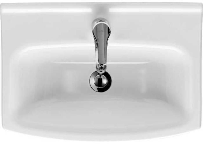 Керамічний умивальник CERSANIA 65 з отвором для змішувача та переливом був пристосований для установки з меблями або безпосередньо до стіни з декоративним сифоном.