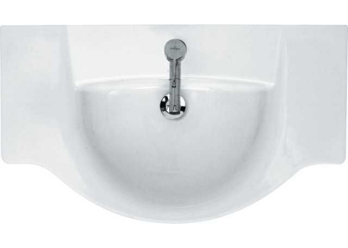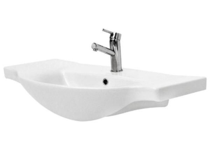 Керамічний умивальник LIBRA 80 з отвором для змішувача та переливом був пристосований для установки з меблями серії ALPINA та OLIVIA, або безпосередньо до стіни з декоративним сифоном.