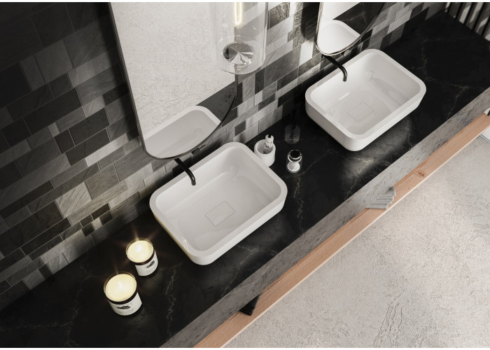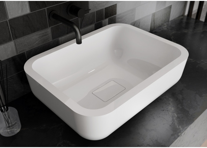 Перелив і отвір для установки змішувача тут відсутні, що дає карт-бланш для дизайнерів. Втілити можна будь-який задум, тим більше що раковина має незвичайну глибоку форму. Навіть зливна зона створена без виділення із загальної площини матеріалу, раковина залишається максимально нейтральною.