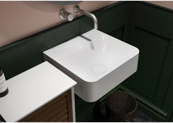 Умивальник SEED має підвісний тип монтажу, отвір під змішувач і поличку для зберігання приладдя. Дана модель досить компактна (розмір 430 * 390 * 130 мм) і дозволить вам заощадити площа вашої ванної кімнати. Наприклад, ви можете розташувати кошик для білизни або невелику вузьку тумбу.