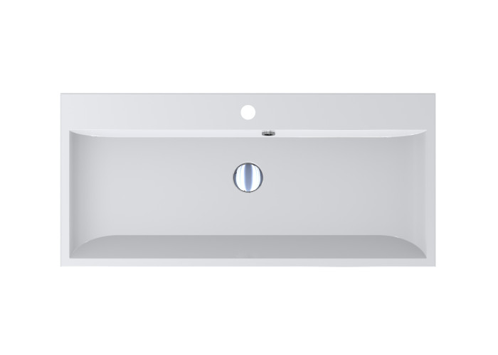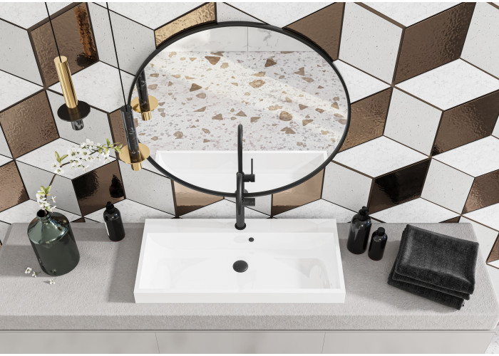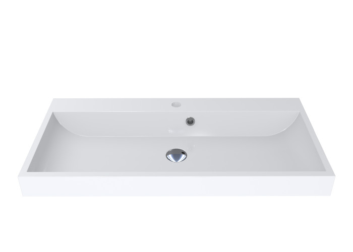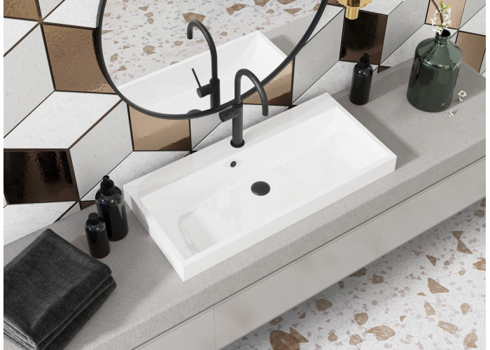 Раковина зі штучного каменю VARNA 900 прекрасно підходить для установки у ванній кімнаті з сучасним інтер'єром. Завдяки прямокутній формі і врізного типу монтажу її можна встановити на тумбу або стільницю такої ж форми.