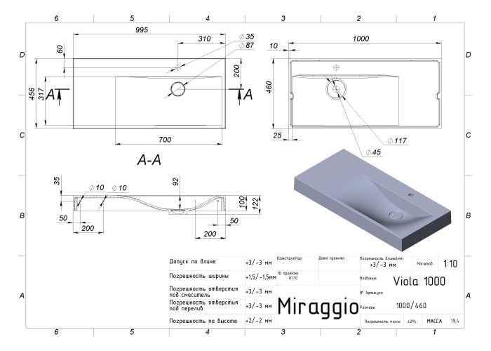 Відправка умивальника здійснюється на наступний день після оплати (якщо товар є на складі). Ми даємо 10 років гарантії на всі вироби Miraggio, 90 днів на обмін і повернення + безкоштовну доставку по Україні.