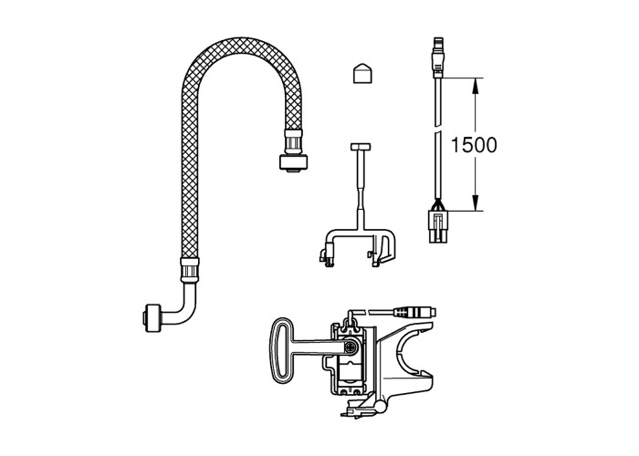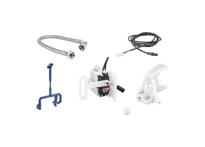Установчий комплект для автоматичного змиву Grohe Sensia Arena 46944001 включає в себе серво мотор для зливного бачка GD 2, тягу для зливного бачка, кабель, ковпак, гнучке підведення.