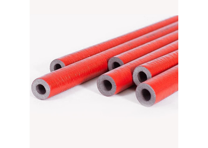 Це трубний утеплювач з поліетиленовим покриттям (червоного кольору) яке захищає матеріал від агресивного впливу будівельних розчинів