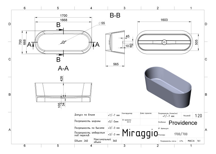 Окремо стояча ванна Providence виготовлена з литого мармуру, а її поверхня може мати матовий або глянцевий фініш. Завдяки покриттю Gelcoat поверхня виробу стійка до температурних перепадів і забруднень. Підтримувати чистоту такої ванни потрібно за допомогою м'яких очищувальних засобів без абразивів.