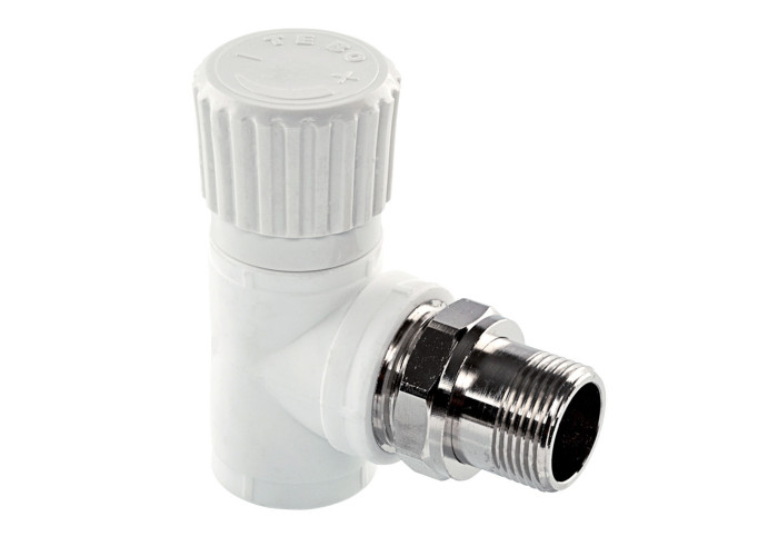 Білий поліпропіленовий радіаторний вентиль кутовий 20x1/2"З TEBO. Продукція поставляється в білому і сірому кольорі і представляє широкий діапазон з'єднувальних елементів і гідравлічної арматури: від 20 до 160 мм. В цілому асортимент бренду ТЕВО включає понад 1000 товарних позицій. У конструкції фітингів ТЕВО technics закладено кілька принципових рішень, що підвищують надійність і зручність застосування. Латунні елементи комбінованих фітингів мають зворотні проточки, що забезпечують надійніше приєднання латунної і поліпропіленової частин. Герметичність з'єднання зберігається навіть при підвищених механічних навантаженнях. Спеціальні мітки на поверхні фітингів спрощують процес монтажу. Продукція повністю відповідає нормам ГОСТ та DIN, проходить контроль якості на всіх етапах виробництва, де використовується високоякісна сировина з Німеччини та Південної Кореї. Розрахунковий термін служби – 50 років за умови правильного монтажу і експлуатації.