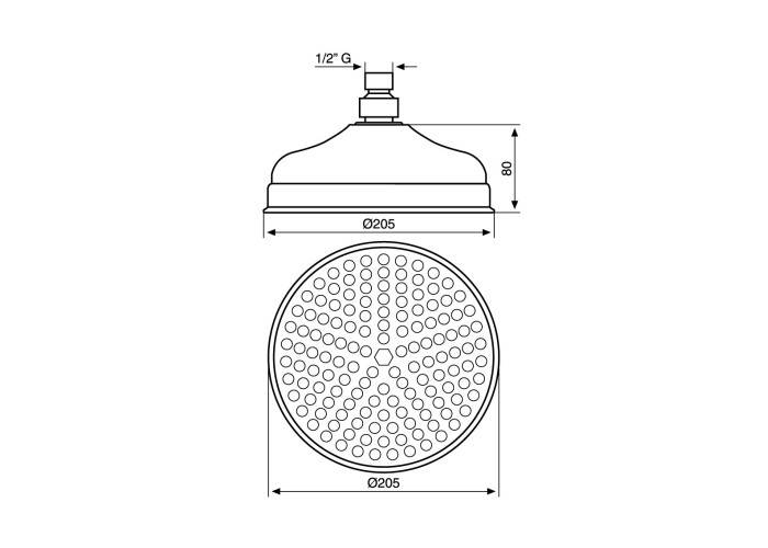 Душ може монтуватися як на стіну, так і на стелю, під діаметр під’єднання 1/2″.