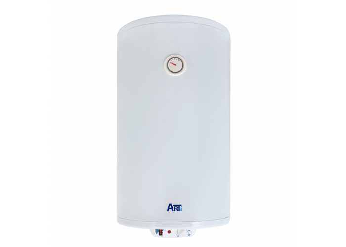 Водонагрівач накопичувальний Arti, потужністю 2000 Вт з сухим теном, оснащений баком об'ємом 50 літрів, з антикорозійним склокерамічним титановим покриттям. Модель вертикального монтажу з механічним управлінням і зовнішнім терморегулятором. Розміри-540x440x440 мм. Вага 19 кг. 2 сухих тени Thermowatt (Італія). Подовжений магнієвий анод 250 мм. Бак з австрійської сталі товщиною 2,2 мм. Склокерамічне титанове покриття бака для води. Подвійна система захисту від перегріву. Моделі вертикального монтажу. Механічне керування. Зовнішній терморегулятор. Гарантія 7 років.