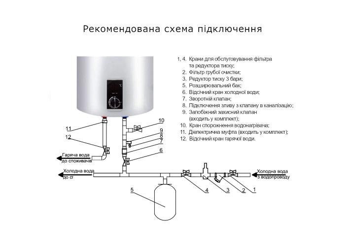 Водонагрівач, кабель з євровилкою, комплект кріплення, інструкція, гарантійний талон