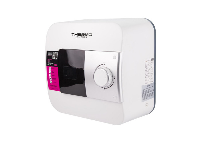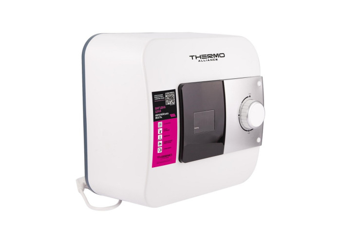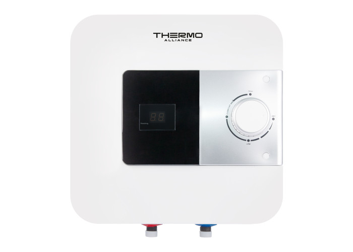 Водонагрівач Thermo Alliance 15 л над мийкою, мокрий ТЕН 1,5 кВт SF15X15N легко розмітити на будь-якій кухні та забезпечити подачу гарячої води для миття посуду, а також для інших господарсько-побутових потреб. Бак бойлера квадратної форми, його глибина разом з елементами кріплення становить 330 мм. Зсередини корпус захищений від корозії шаром емалевого покриття, магнієвим анодом. На передній поверхні розташована панель управління з поворотною ручкою регулювання нагріву й дисплеєм.