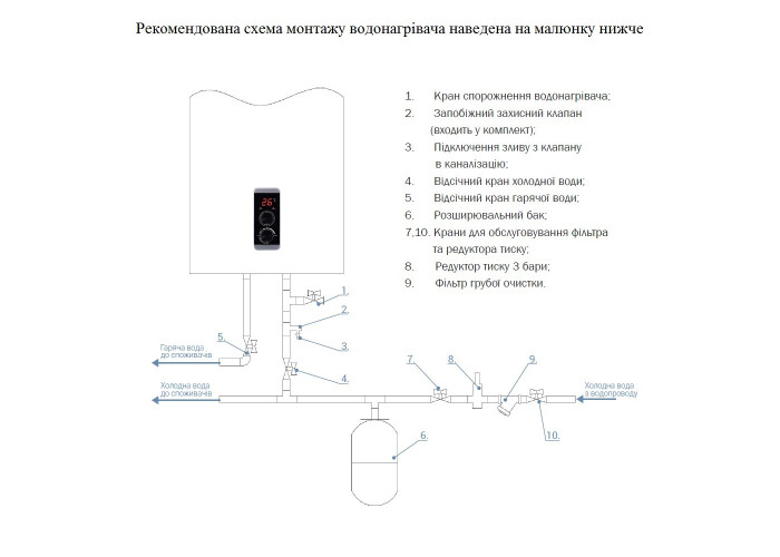 Водонагрівач, кабель з євровилкою, комплект кріплення, інструкція, гарантійний талон