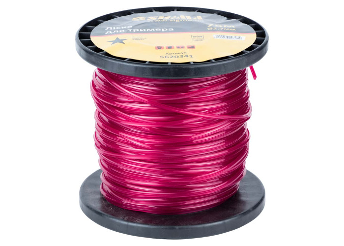 Волосінь для тріммера зірка Ø2.7мм 75м котушка Sigma 5620341 призначена для установки в котушці тримерів і служить для стрижки газонної трави та іншої рослинності. Виготовлена з високоякісного нейлону. По всій довжині має однакову товщину. Володіє високою гнучкістю, міцністю на розрив і зносостійкість. Чи не розшаровується і не втрачає своїх якостей. Товщина волосіні підбирається під параметри тримера. Переваги: форма перетину "зірка" підходить для грубої рослинності; агресивна форма ріжучої кромки дозволяє значно збільшити ефективність роботи і підвищити продуктивність; легко прорізає матеріал і менш травматична для рослинності.