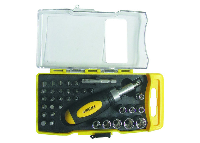 Викрутка з реверсом + насадки торцеві і біти Sigma (4002511) призначений для монтажу і демонтажу шурупів, саморізів і гвинтів. Набір укомплектований ударопрочной викруткою з реверсивним механізмом і гумованою протиковзкою рукояткою, торцевими головками, битами виготовленими з високоякісної хромованадіевой сталі. Компактний пластиковий кейс для зберігання і транспортування. Особливості: Crv сталь; двокомпонентна ручка. 36 предметів: викрутка з реверсом 25 біт ¼" 25 мм: SL3, 4, 5, 6, 7 мм; PH0, 1, 2x2, 3; PZ1, 2, 3; Hex2, 3, 4, 5, 6; T8, T10, T15, T20, T25, T30, T40. 9 насадок: 4, 5, 6, 7, 8, 9, 10, 11, 12 мм. Перехідник 50 мм квадрат 1/4"- шестигранник 1/4" Hex.