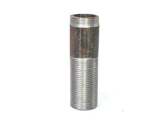 Згін сталевий розмір різьби 1/2"дюйма. Фітинги для металевих труб діляться на різьбові, а також зварні. Їх основне призначення - з'єднання двох і більш контурів різного перетину. Сталеві конструкції відмінно зарекомендували себе за рахунок високого ступеня міцності, надійності, однак не варто забувати про те, що для створення герметичного з'єднання циліндричну різьбу ущільнюють паклею, змочену залізним суриком, замішаним на натуральній оліфі, стрічкою фум, або спеціальною ущільнюючою ниткою. На підставі матеріалу, фітинги можуть мати різьбу різної довжини. Використовуються для з'єднання труб в системах опалення, водопроводу, газопроводу та інших системах, що працюють в умовах неагресивних середовищ (вода, насичена водяна пара, горючий газ і ін. при температурі середовища не вище 175 ° С і тиску Р = 1,6 МПа. Сталь, як і будь-який метал, боїться корозії. Для того щоб захистити метал від корозії, сталь покривається шаром цинку. Такі вироби називаються оцинкованими. Вони мають підвищений експлуатаційний ресурс.