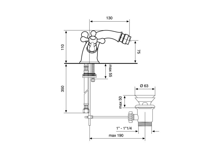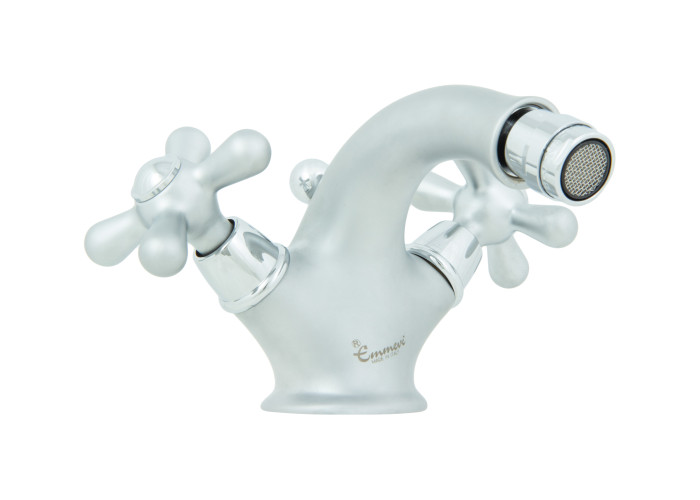 Представлений тут двовентильний, настільний змішувач для біде з донним клапаном Deco-Classic SC12014 від Emmevi, виготовлений з високоякісної латуні з покриттям кольору матового хрому, і має стаціонарний вилив з виносом 13 см. Модель встановлюється на один отвір, використовуючи гнучкі шланги-підводки під діаметр 1/2″.