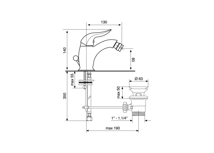 Представлений тут одноважільний настільний змішувач для біде з донним клапаном Duca CR44004 від Emmevi виготовлений із високоякісної латуні з покриттям кольору хрому, має стаціонарний вилив з виносом в 13 см. Модель встановлюється на один отвір використовуючи гнучкі шланги для підведення води М10*1/2″.
