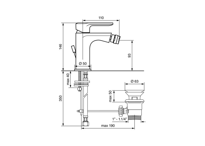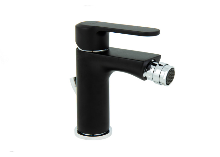 Представлений тут одноважільний настільний змішувач для біде з донним клапаном Nefer NEO 77044 від Emmevi виготовлений із високоякісної латуні з покриттям матового чорного і хромового кольорів, має стаціонарний вилив з виносом 11см. Модель встановлюється на один отвір використовуючи гнучкі шланги для підведення води М10*1/2″.