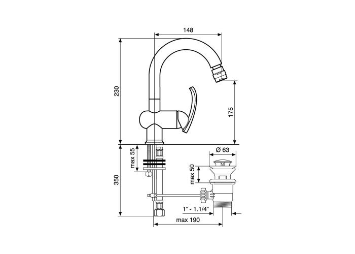 Комплектація Змішувач, Донний клапан, Шланг-підводка – 2 шт