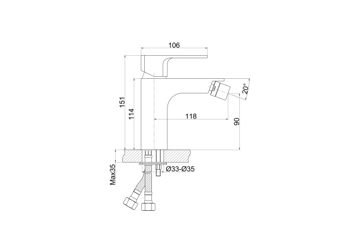 Змішувач для біде King хром PSH706 з аератором на шарнірі, без донного клапану, без шлангів підключення, кріплення шпилька