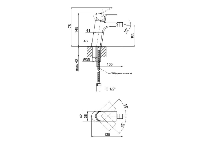Змішувач, гнучкий підвід, кріпильні деталі.