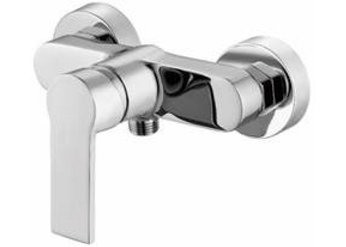 Змішувач для душу BRASCO. Одноважільний настінний змішувач для душу серії BRASCO, виготовлений з високоякісної латуні з хромованим покриттям. Модель встановлюється на два отвори за допомогою ексцентрикового підєднання під діаметр 1/2 і має нижнє відведення для підєднання душового шланга під діаметр 1/2.