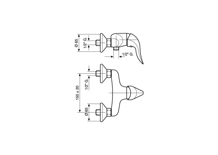 Представлена тут модель настінного, одноважільного змішувача для душу Duca CR44002 від Emmevi виготовлена з високоякісної латуні з покриттям кольору хрому, має нижнє відведення для під’єднання душового шланга під діаметр 1/2″, і встановлюється на два отвори за допомогою ексцентрикового під’єднання під діаметр 1/2″.