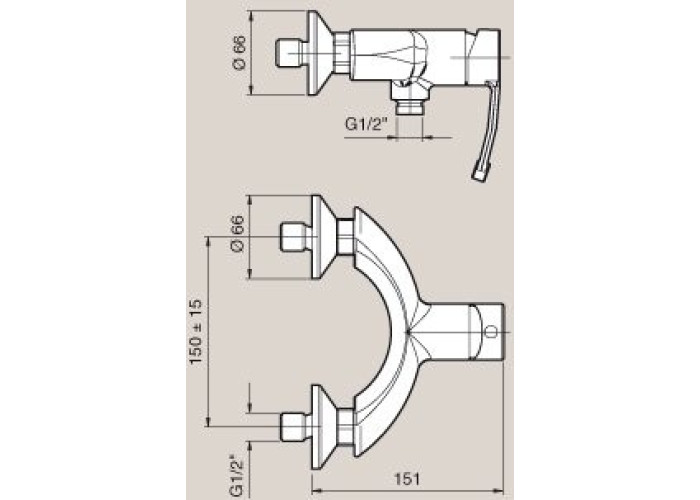 Представлена тут модель настінного, одноважільного змішувача для душу CS81002 серії Planet від Emmevi, виготовлена з високоякісної латуні з покриттям кольору матового хрому, обладнується нижнім відводом для під’єднання душового шланга під діаметр 1/2″, і встановлюється на два отвори за допомогою ексцентрикового з’єднання під діаметр 1/2″.