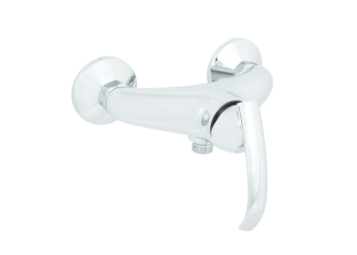 Представлена тут модель настінного, одноважільного змішувача для душу CR72002 серії Ramses від Emmevi, виготовлена з високоякісної латуні з покриттям кольору хрому, обладнується нижнім відводом для під’єднання душового шланга під діаметр 1/2″, і встановлюється на два отвори за допомогою ексцентрикового з’єднання під діаметр 1/2″.